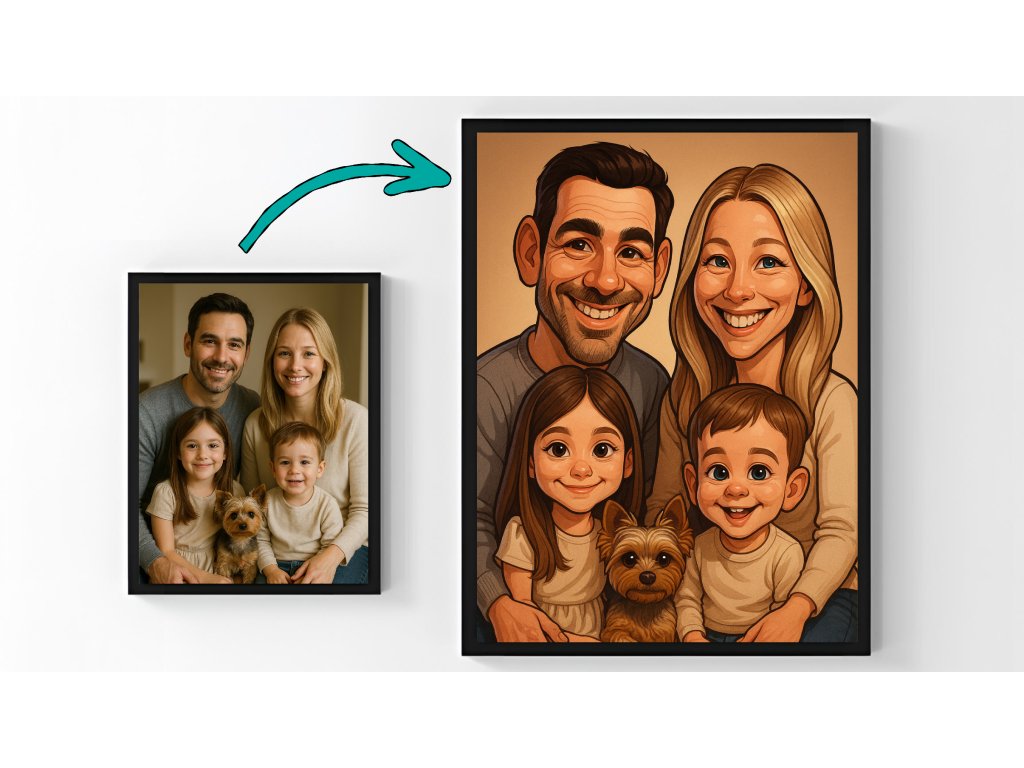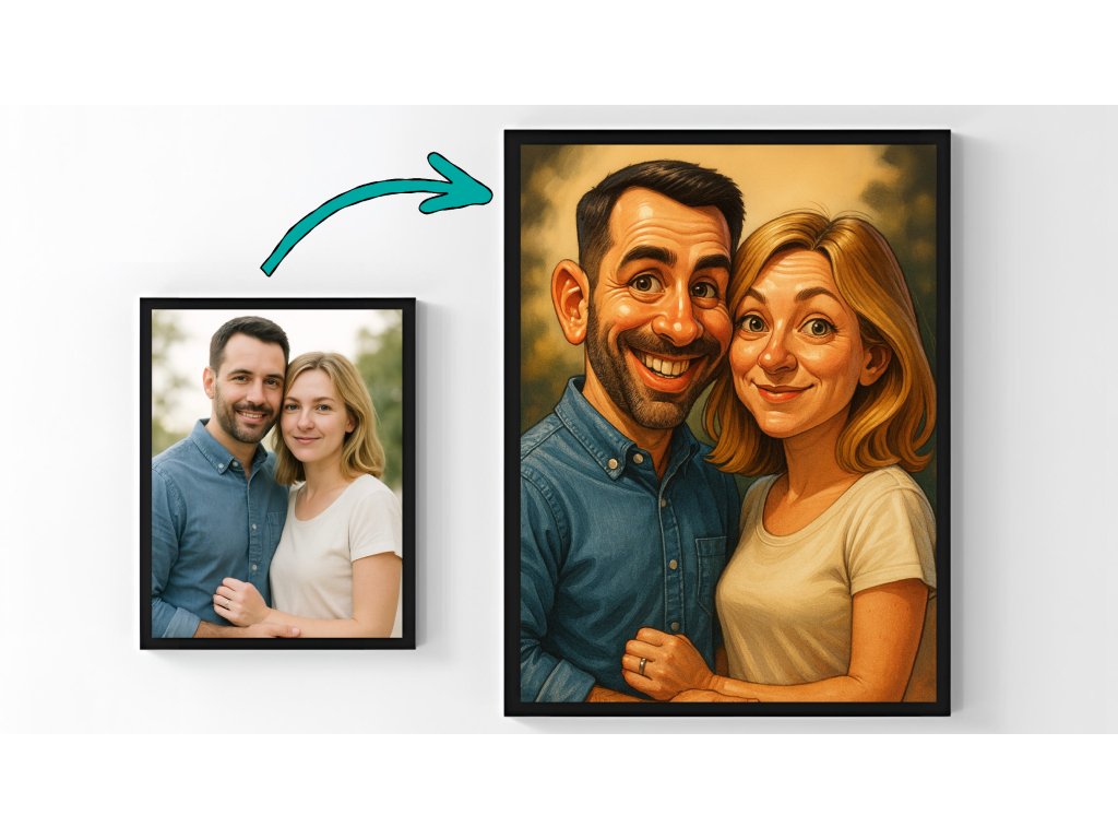 Udělej ze sebe nebo svých blízkých hlavní postavu zábavného obrazu – plakát ve stylu Karikatury dodá každému prostoru energii, humor a osobitost.