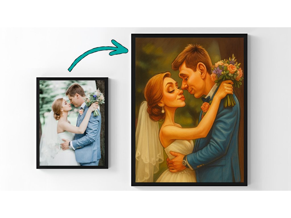 Proměň svou fotku v jedinečný a vtipný portrét! Plakát ve stylu Karikatury zachycuje osobnost s nadsázkou – přehnané rysy, výrazné barvy a typický kreslený humor dělají z každého obrázku originální umělecký kousek.