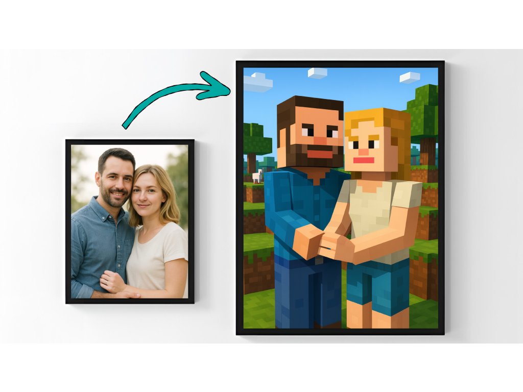 Proměň svou fotku v hrdinu kostičkového dobrodružství – plakát ve stylu Světa z kostiček přinese do tvého prostoru radost, barevnost a špetku herní nostalgie.