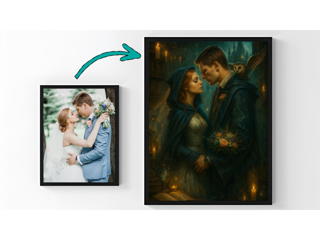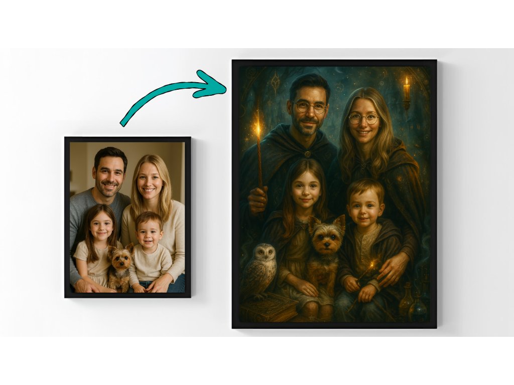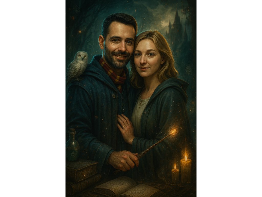 Objev svět, kde se realita prolíná s magií. Plakát ve stylu Kouzelnického světa přináší atmosféru starých knih, svíček, lektvarů a kouzelnických symbolů. Detailní zpracování a tmavší ladění barev vytvářejí dojem tajemna a hloubky, díky kterému bude tvůj interiér působit jako z příběhu o čarodějích a kouzlech.