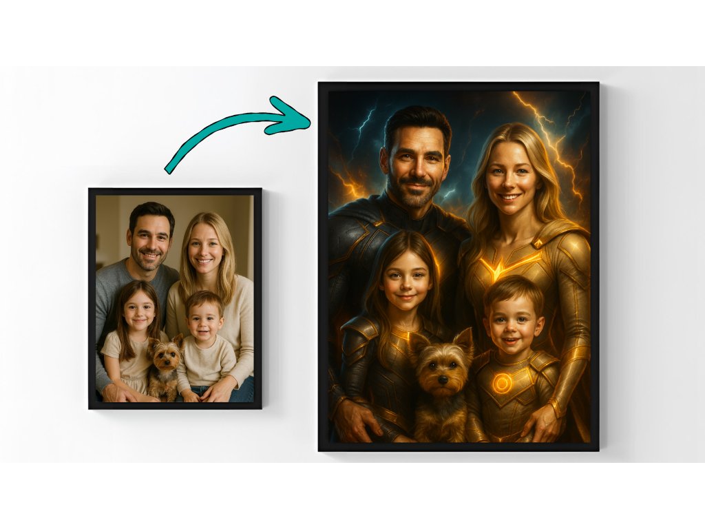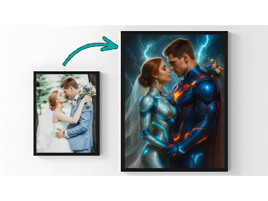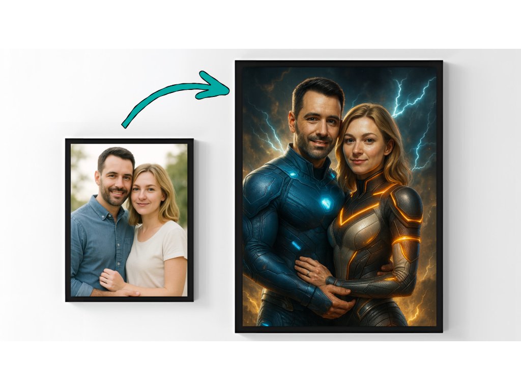 Vstup do světa akce, odvahy a síly s plakátem ve stylu Superhrdinů. Každá fotka se promění v komiksový portrét plný energie, výrazných barev a dynamických póz. Styl inspirovaný ikonickými hrdiny přináší do tvého interiéru sílu, napětí a pořádnou dávku sebevědomí.